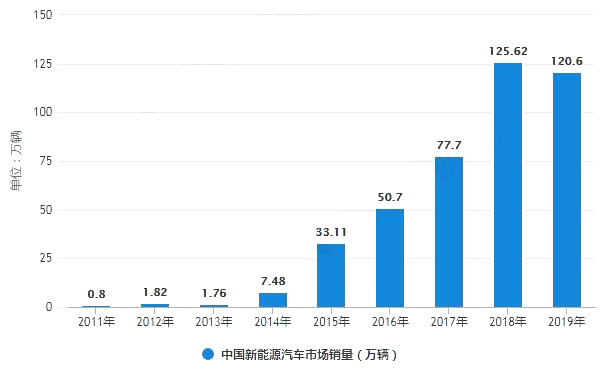 根據(jù)工信部在論壇上公開的數(shù)據(jù),2019年我國(guó)新能源汽車銷量120.6萬(wàn)輛,2018年這一數(shù)據(jù)為125.6萬(wàn)輛,下降約3.98%。這是我國(guó)自2009年大力推廣新能源汽車市場(chǎng)發(fā)展以來,首次出現(xiàn)新能源汽車年度銷量下滑。